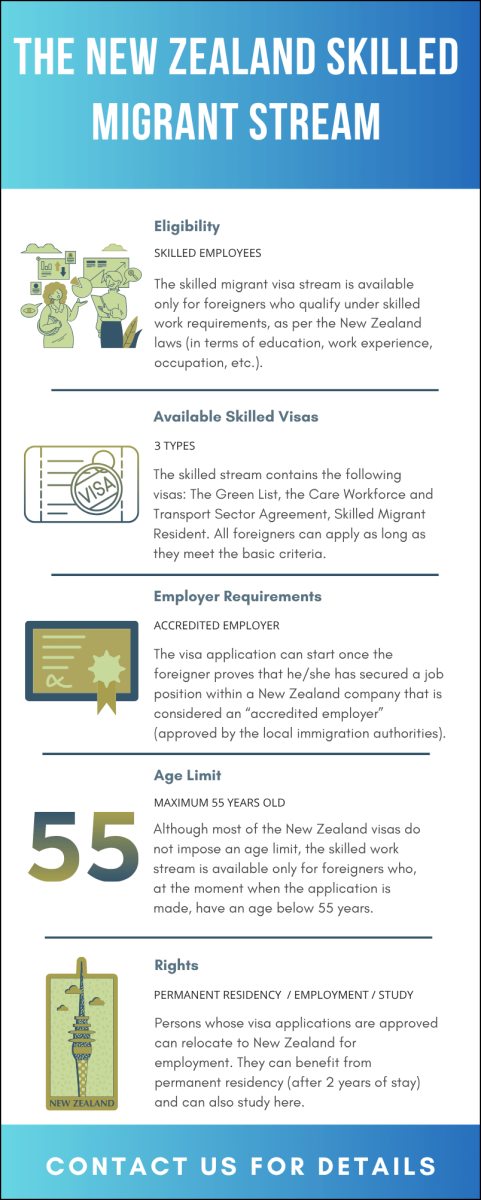 Besides this rule, he or she must meet health requirements and prove that the requirements for a good character are met (not having debts, not having criminal offences in the home country). There are other basic requirements the applicant must meet for immigration in New Zealand (such as having a salary that pays at least 1.5 times the median salary. In our infographic below, you can learn the basic traits of the New Zealand Skilled Migrant stream: